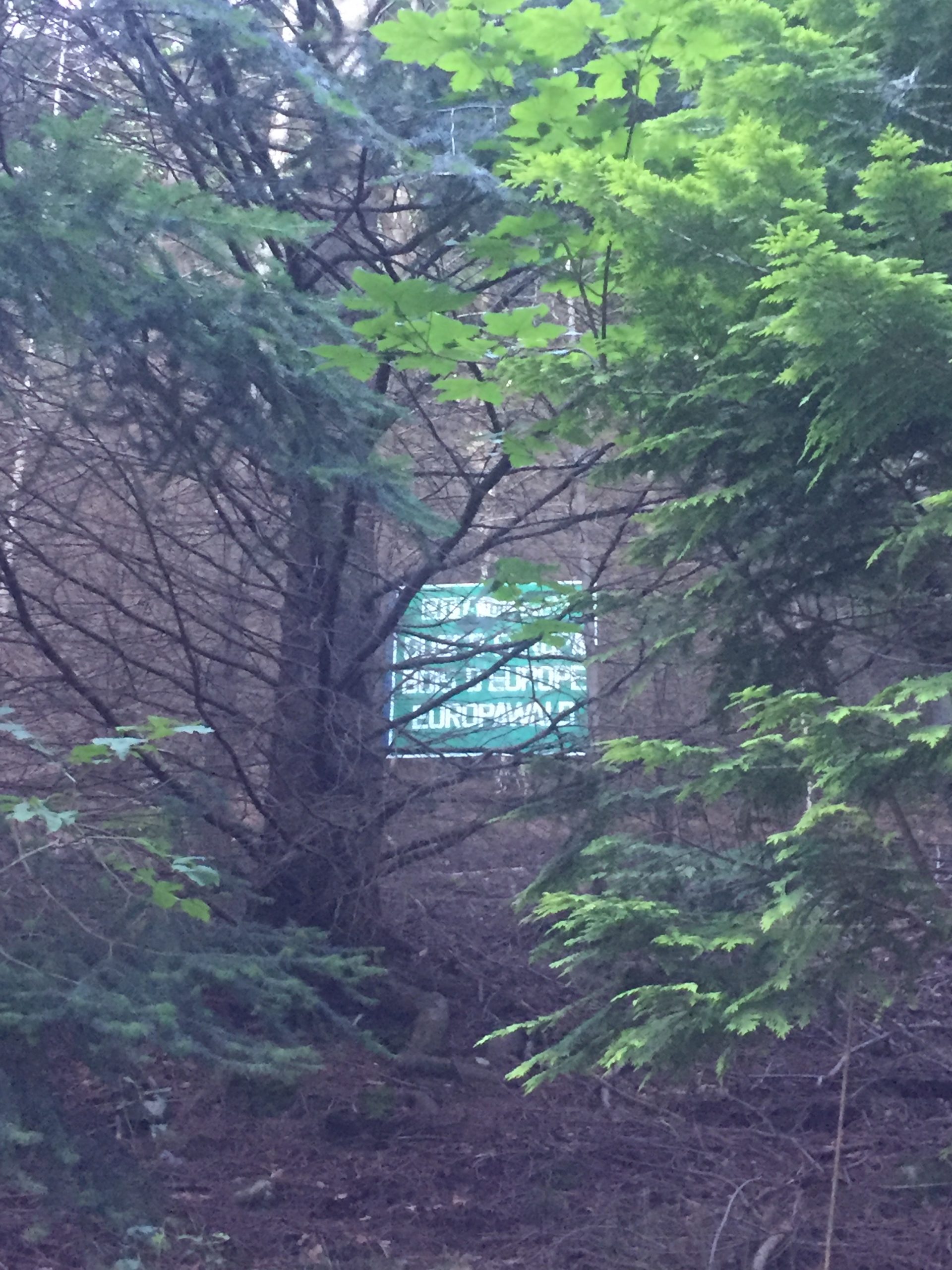 Ma ancor di più, passando l’altra sera sulla via che porta alla Capanna Mara, mi si è stretto il cuore a vedere il Bosco Europa malandato e apparentemente malaticcio. Il Bosco Europa doveva essere il simbolo di questa amicizia e di questa voglia di crescere insieme. ‘Facciamo piantare degli alberi ai ragazzi’ e io c’ero. Ero lì negli anni ’80 a veder nascere il bosco con le radici tedesche francesi e italiane, ero lì a credere che quei ragazzi sarebbero tornati a godere dell’ombra di quegli abeti (se sono abeti, perché di piante non capisco nulla). E invece, caduti tutti gli aghi verdi, venuta meno l’ombra, ecco che spunta il cartello, tra i tronchi spogli, a ricordarmi il mancato obiettivo di quell’operazione e il malumore generale sulla fattibilità di una Europa fatta da europei.