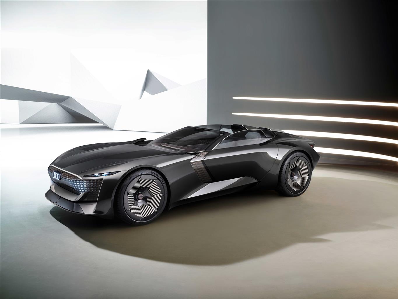 Con Skysphere concept, Audi interpreta la mobilità del futuro nel segmento di lusso offrendo agli utenti un’inedita esperienza di bordo. Prima di una nuova famiglia di tre prototipi, la roadster a elettroni può contare sull’interasse variabile. Un’avanguardistica tecnologia che, in abbinamento alla guida autonoma di Livello 4, permette la convivenza di due anime: da GT e da sportiva pura. Alla sterzata integrale e alla gestione attiva predittiva dell’assetto si accompagnano la potenza massima di 632 CV e un nuovo approccio stilistico dall’interno verso l’esterno, volto a definire in primis le linee e le caratteristiche dello spazio attorno ai passeggeri e solo in un secondo momento le forme della carrozzeria. L’auto diventa un terzo spazio abitativo: un “experience device”.